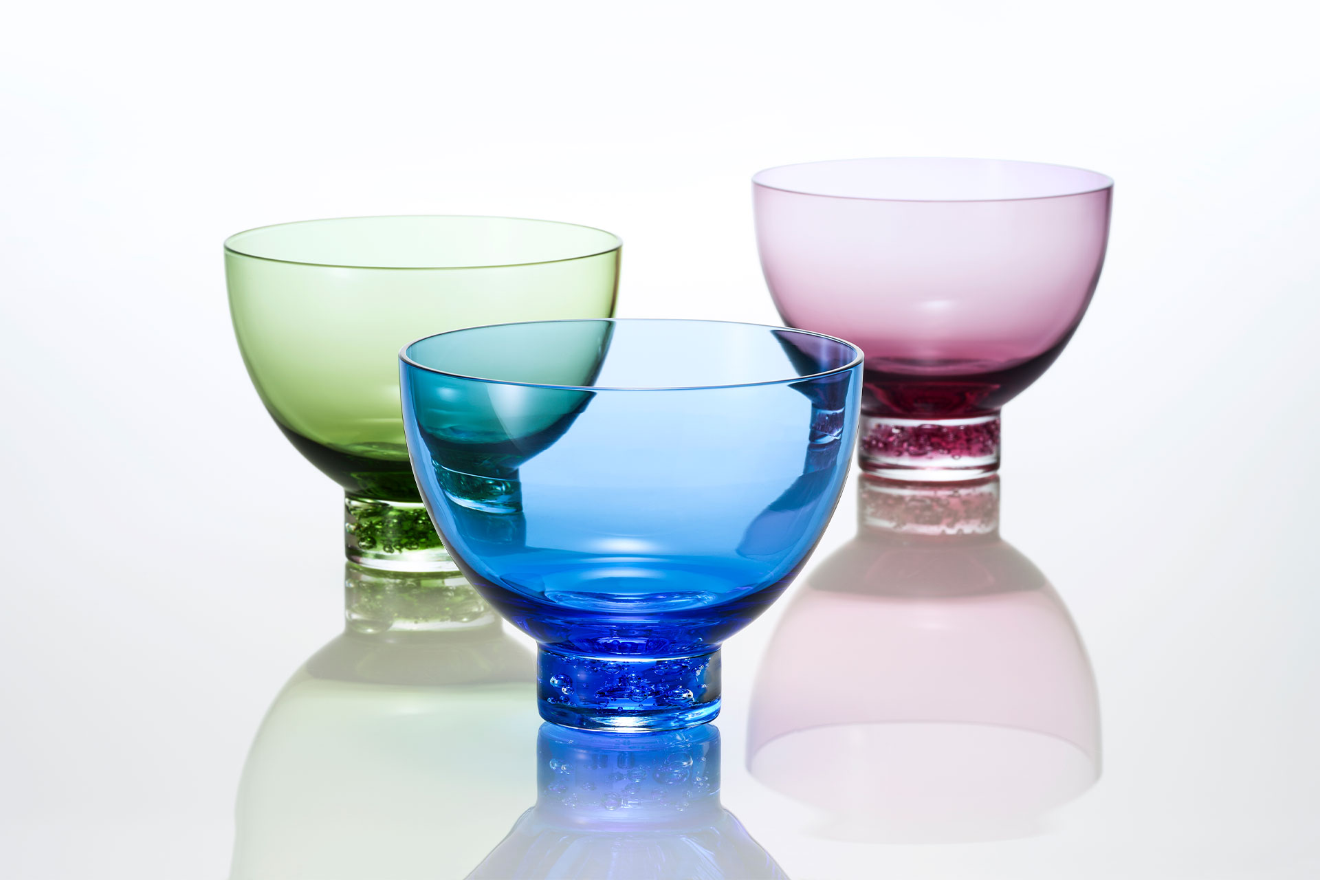 光を透すガラスの輝きや美しさは「色」があることで、より多彩な表情を見せます。また、色が私たちに感情のようなものを運んできてくれるのであれば、暮らしのなかで「色」は、とても大切な役割を担っていると思えるのです。Sghrのガラスに特徴的な「色」を紹介します。