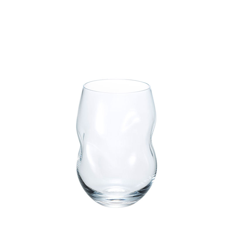 丸いグラスをあたため、ガラスがくしゃっとなる一瞬の表情を閉じ込めました。ゆらゆらと光が屈折してみえる陽炎のように、グラス越しの景色や質感をお楽しみください。