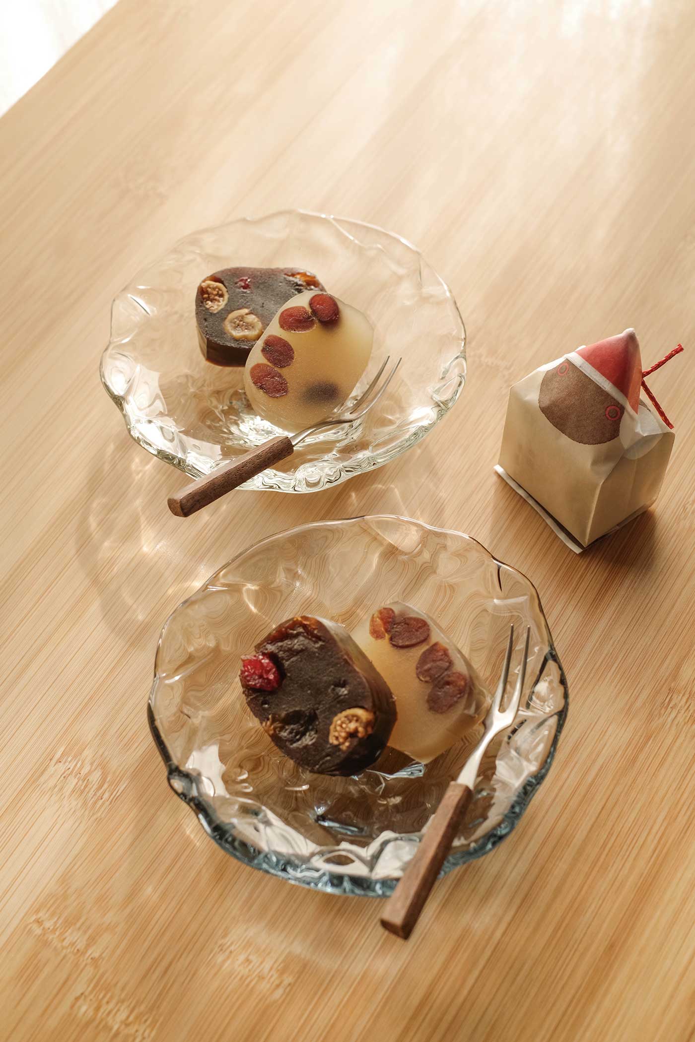 美味しいお菓子をあじわうひと時、日常の余白に小さな別世界が訪れます。どんな素材のハーモニーがあって、どのような姿と物語があるのか。お菓子の数だけ魅力があります。ガラスの小皿は、そんな小さな別世界を輝かす舞台のようです。どんなお菓子にも合うもの、意外な組み合わせに驚くもの。日本全国から取り寄せた、さまざまなお菓子と小皿をお愉しみください。(お菓子と小皿1の記事はこちら)