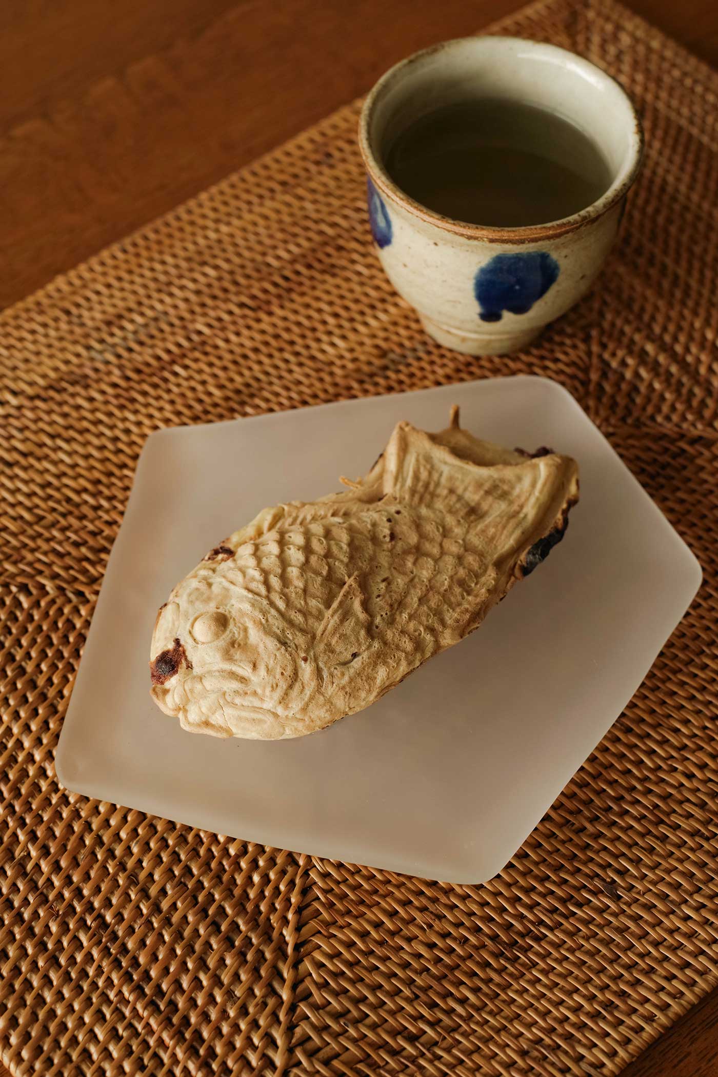 プレート〈氷紋〉は、ハンドメイドならではの絶妙な形をしたうつわです。焼き魚などの和食にぴったりと合いますが、今回は鯛焼きをのせてみました。