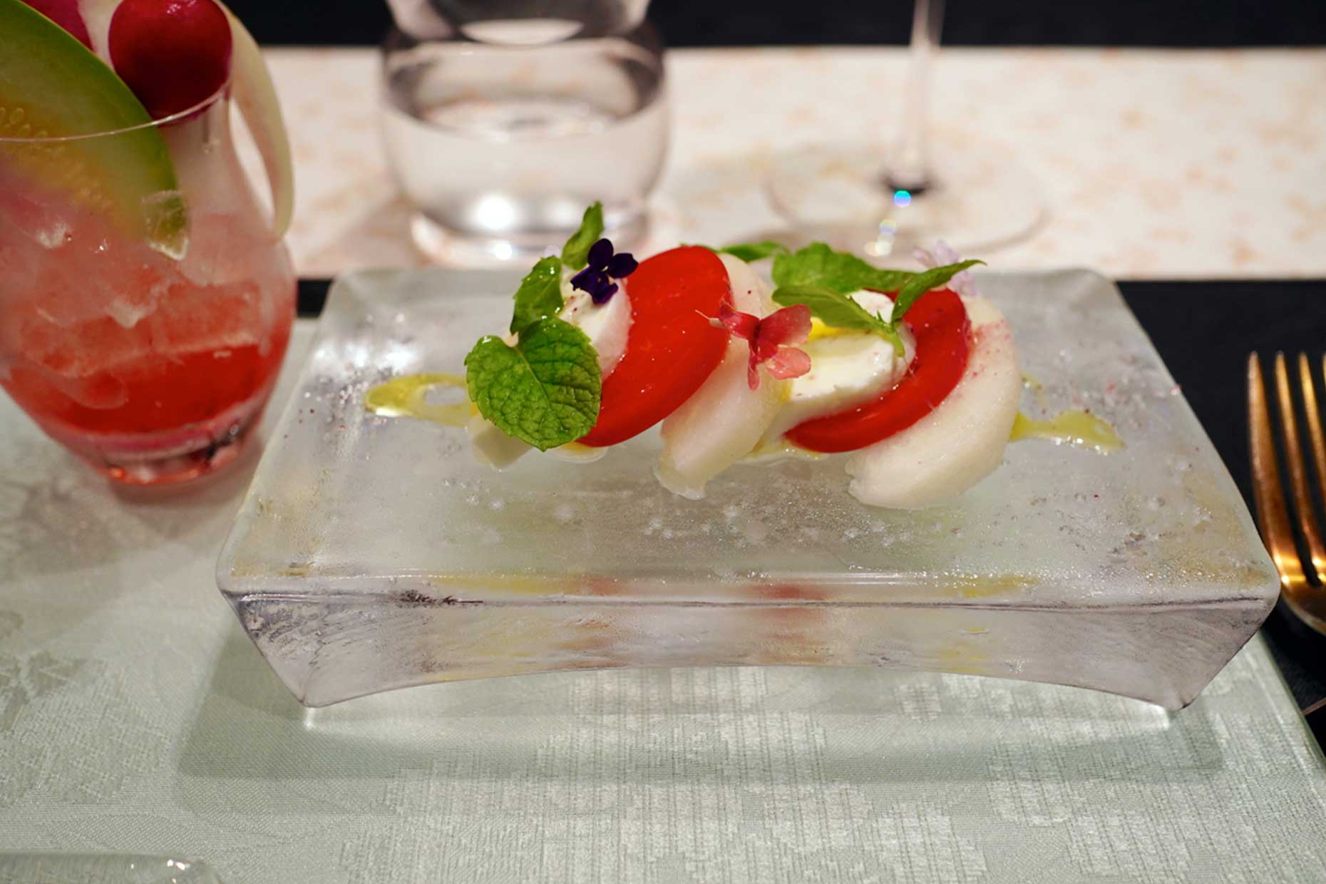 フルーツトマト、モッツアレラチーズと、南水という品種の梨とともに味わう秋のカプレーゼ。(SSG-175W)