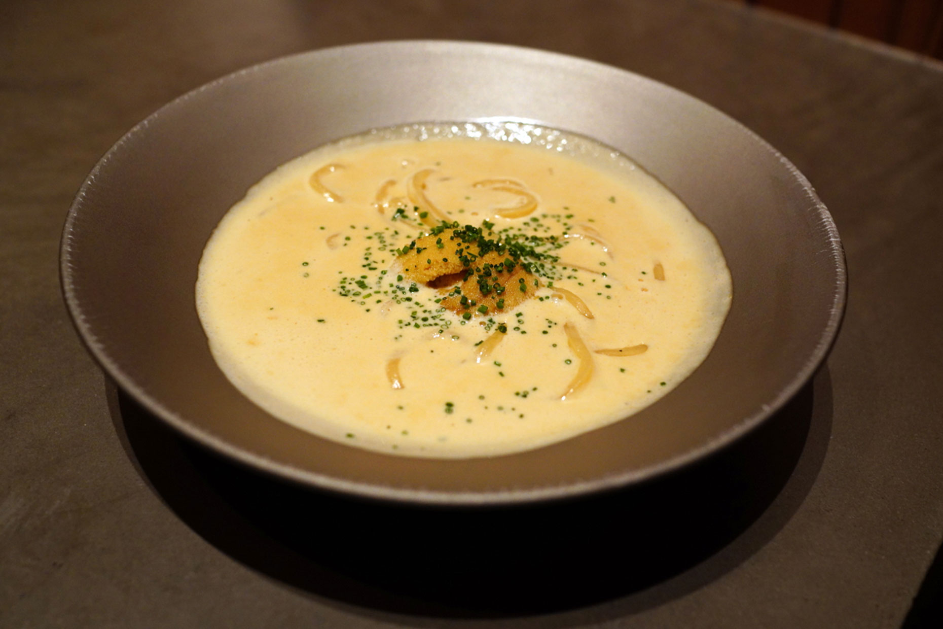 北海道の無添加雲丹がトッピングされたクリーミーなソースで味わいます。