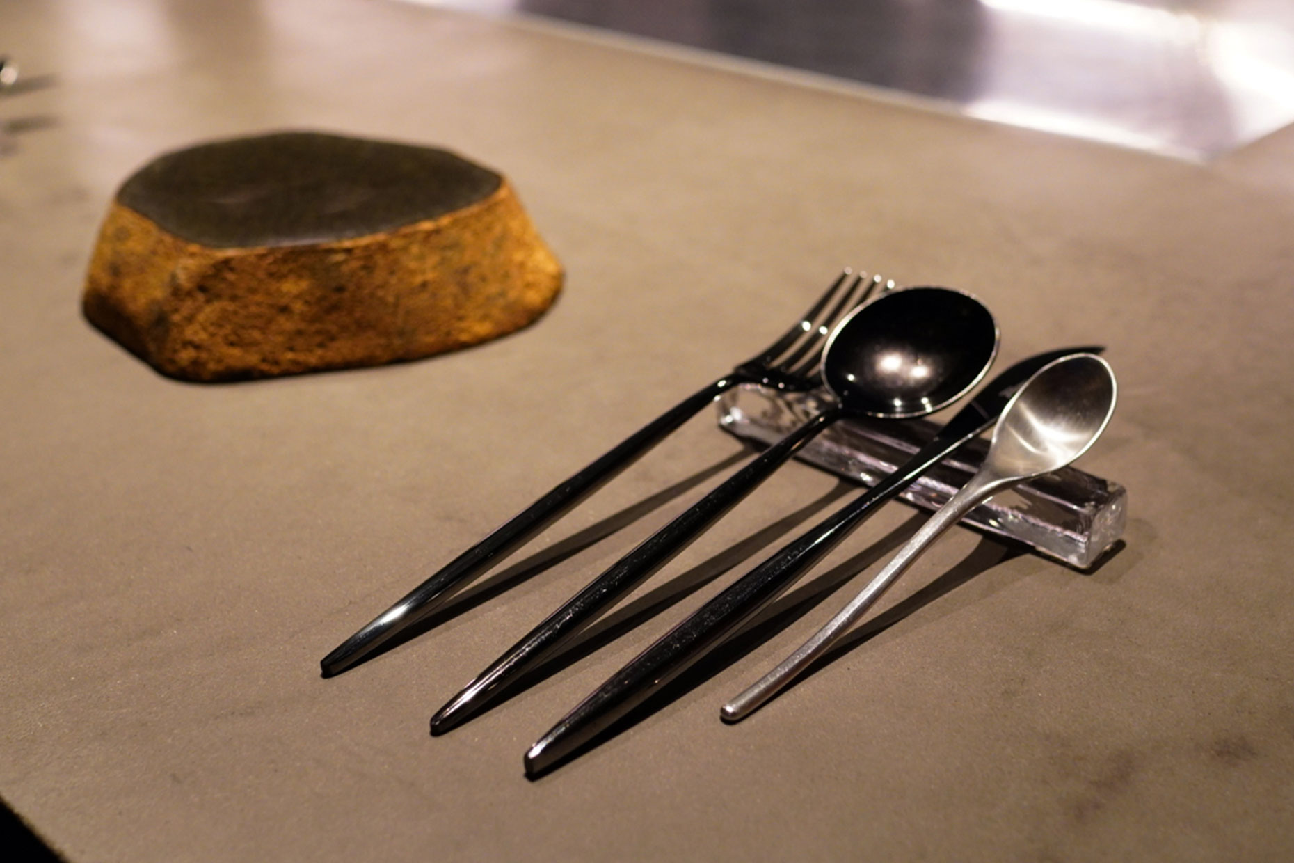 シンプルなカトラリーレストをお使いいただいています。(KF-64W)