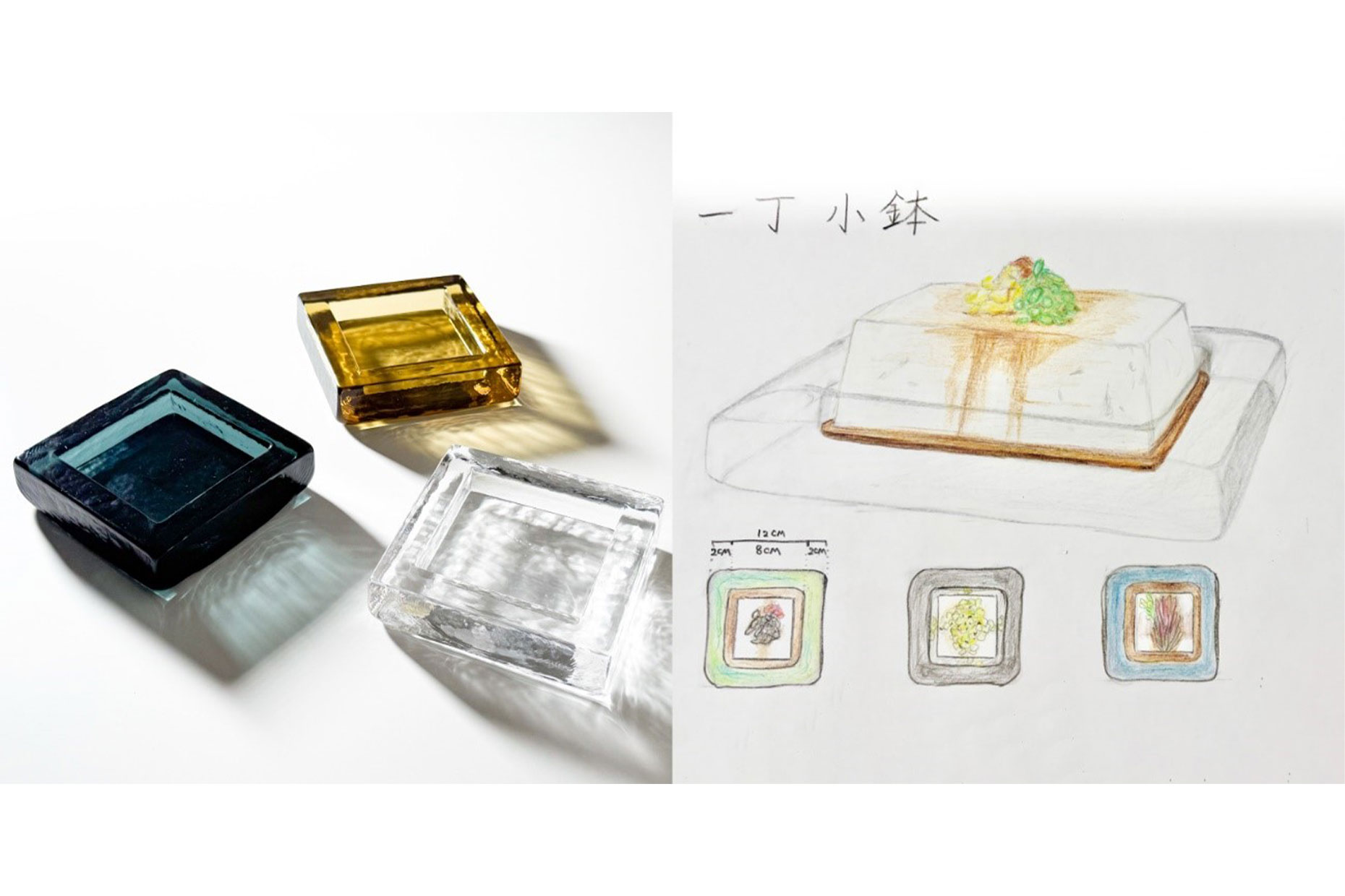 上下のガラスをクリアと不透明に分け、ほんのり中の色が透けてどの料理でも馴染むようにしました。また、「洗いやすさ・重ねて置ける・丈夫」といった利便性も考慮し、長く使える小鉢にしました。