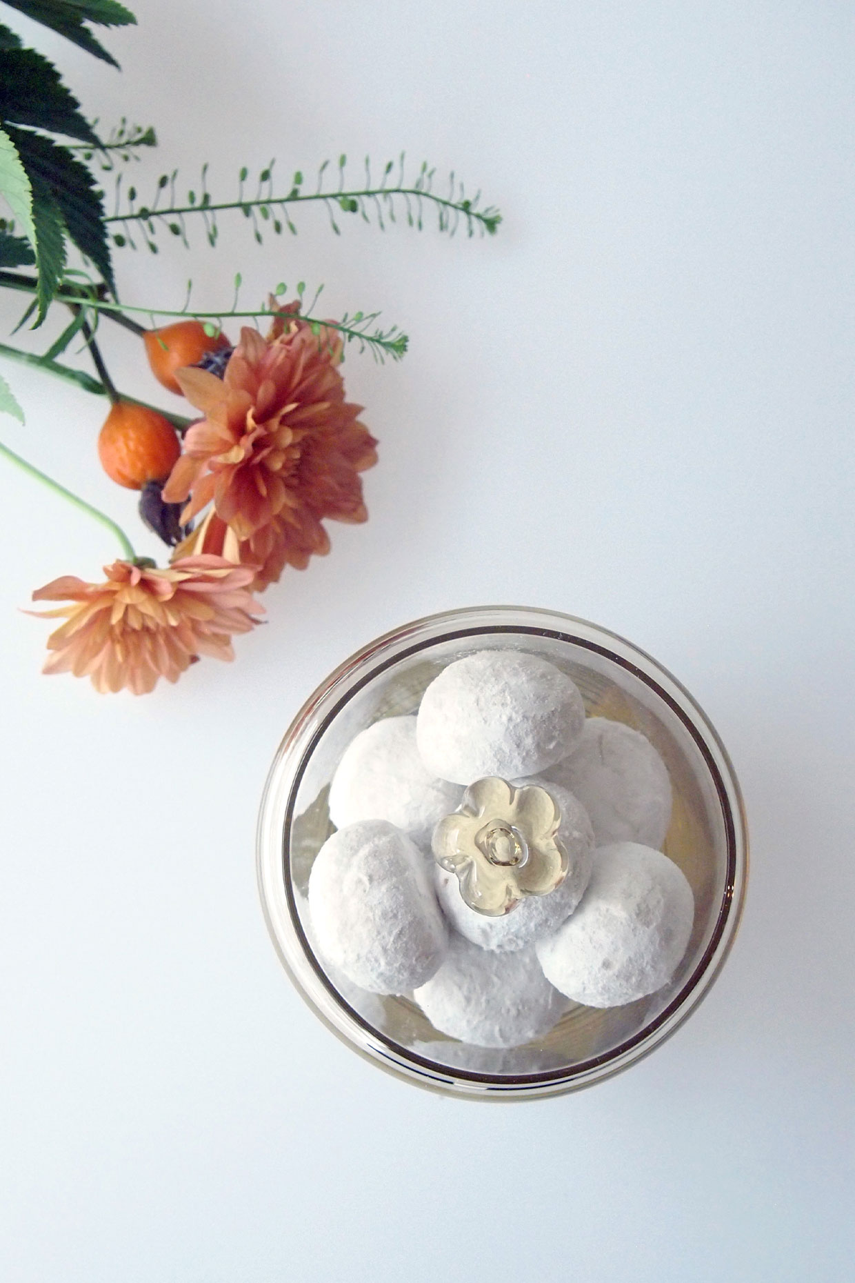 白くてコロンとしたスノーボールを蓋付きの小物入れに入れて、お客さまをお迎えする際のお菓子に。その見た目の可愛らしさに会話が弾むこと間違いなしです!