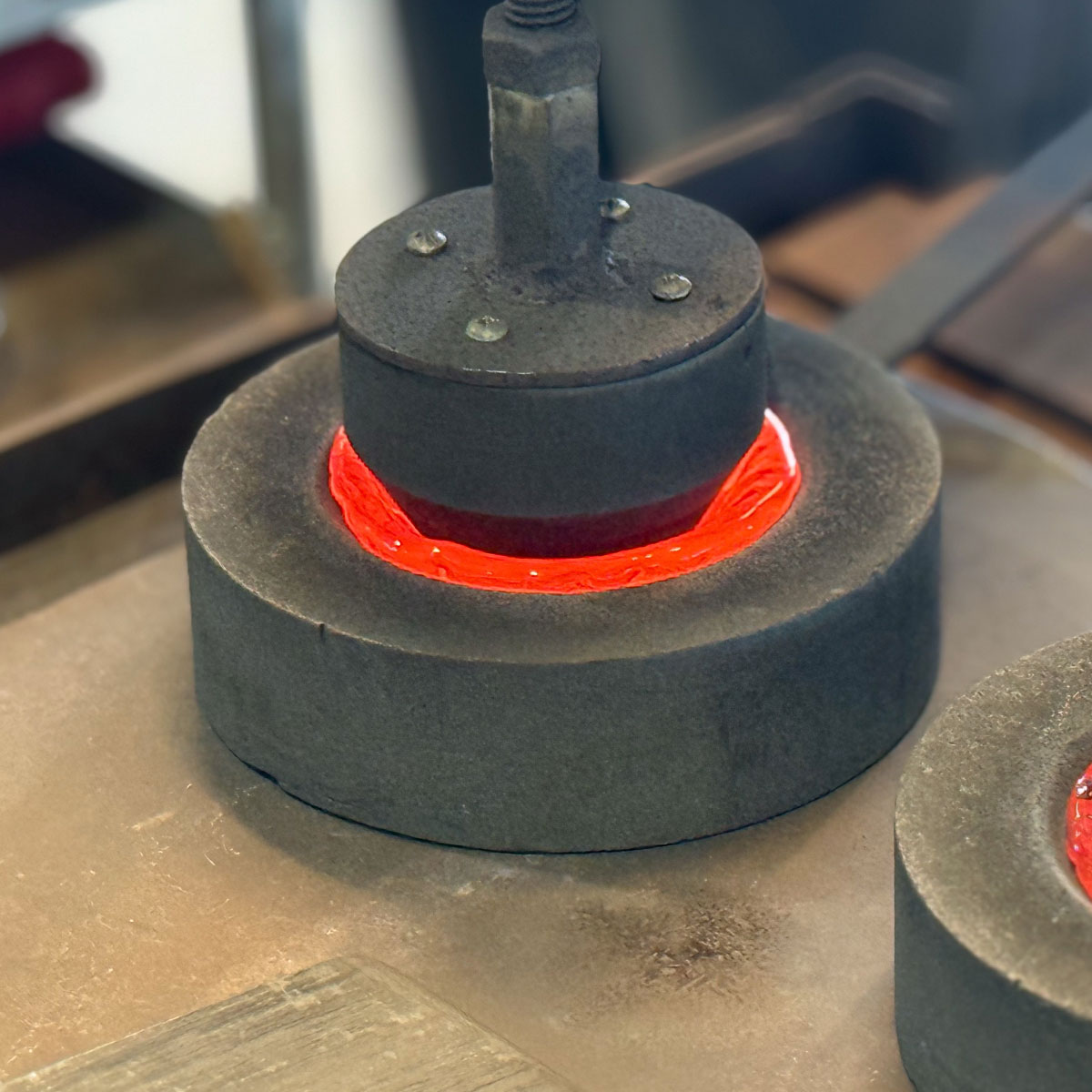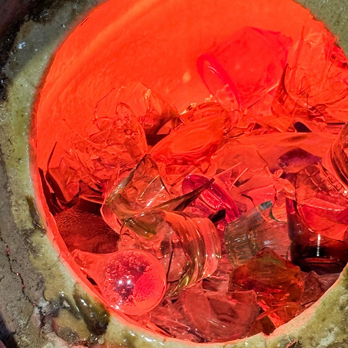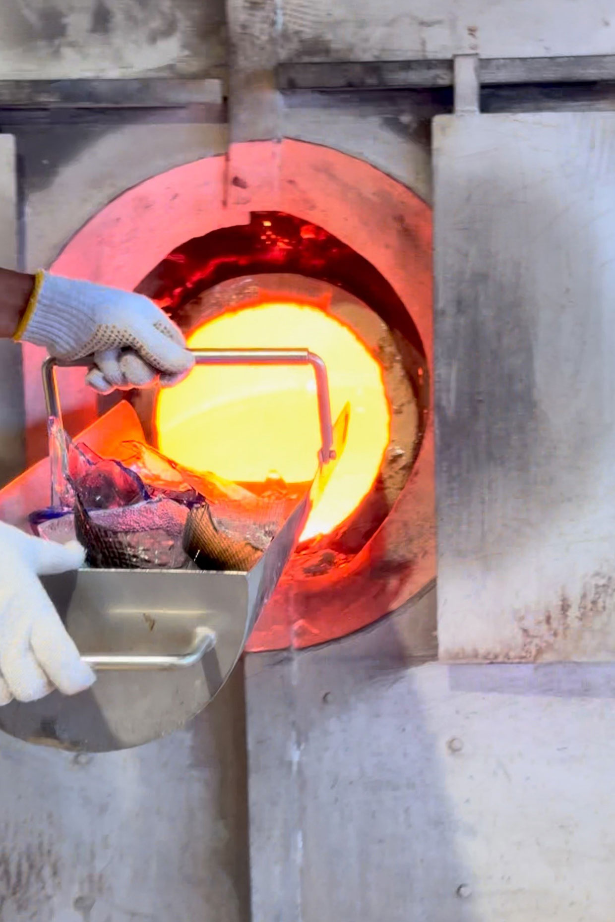 皆さまからお届けいただいた素材は、再び1400℃ の炉の中で溶かすことで、新たな製品に生まれ変わります。