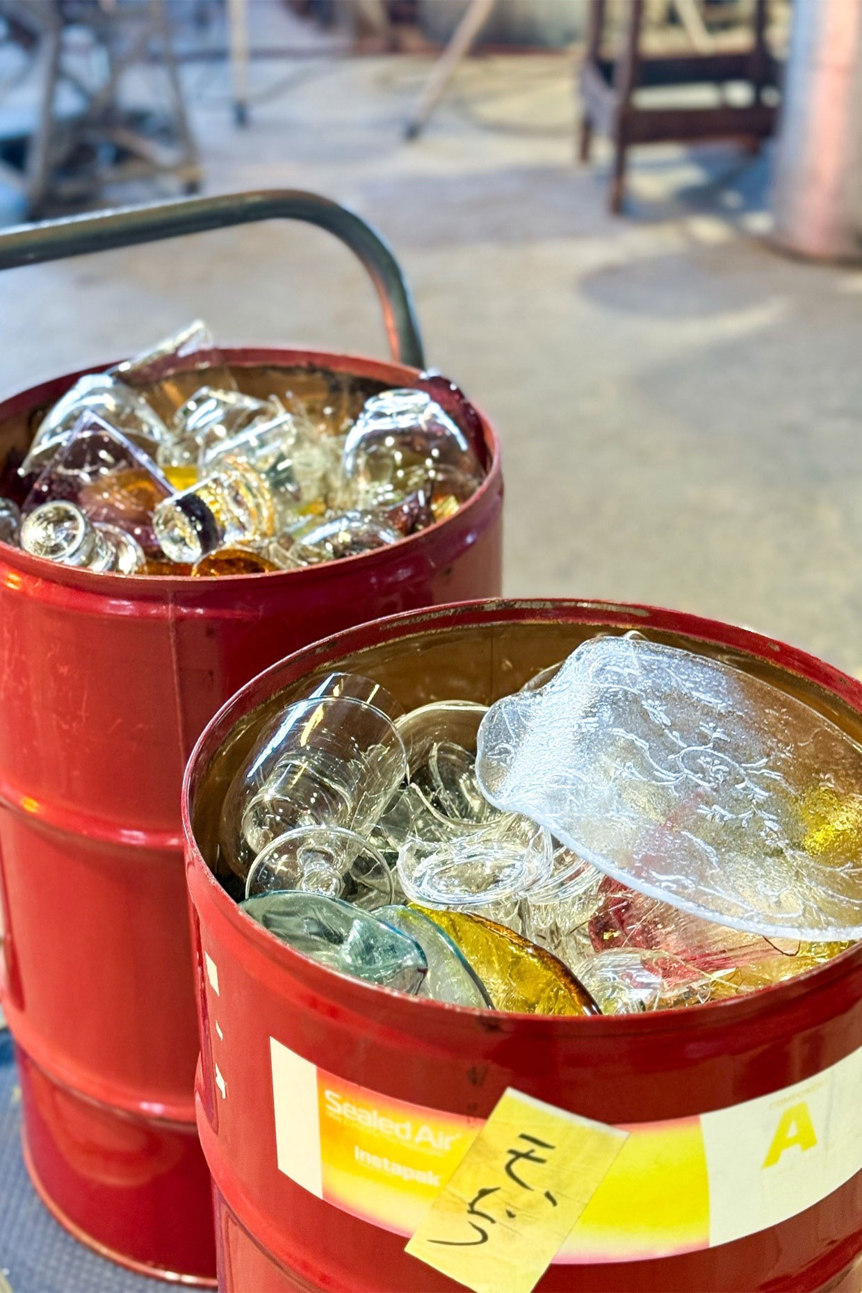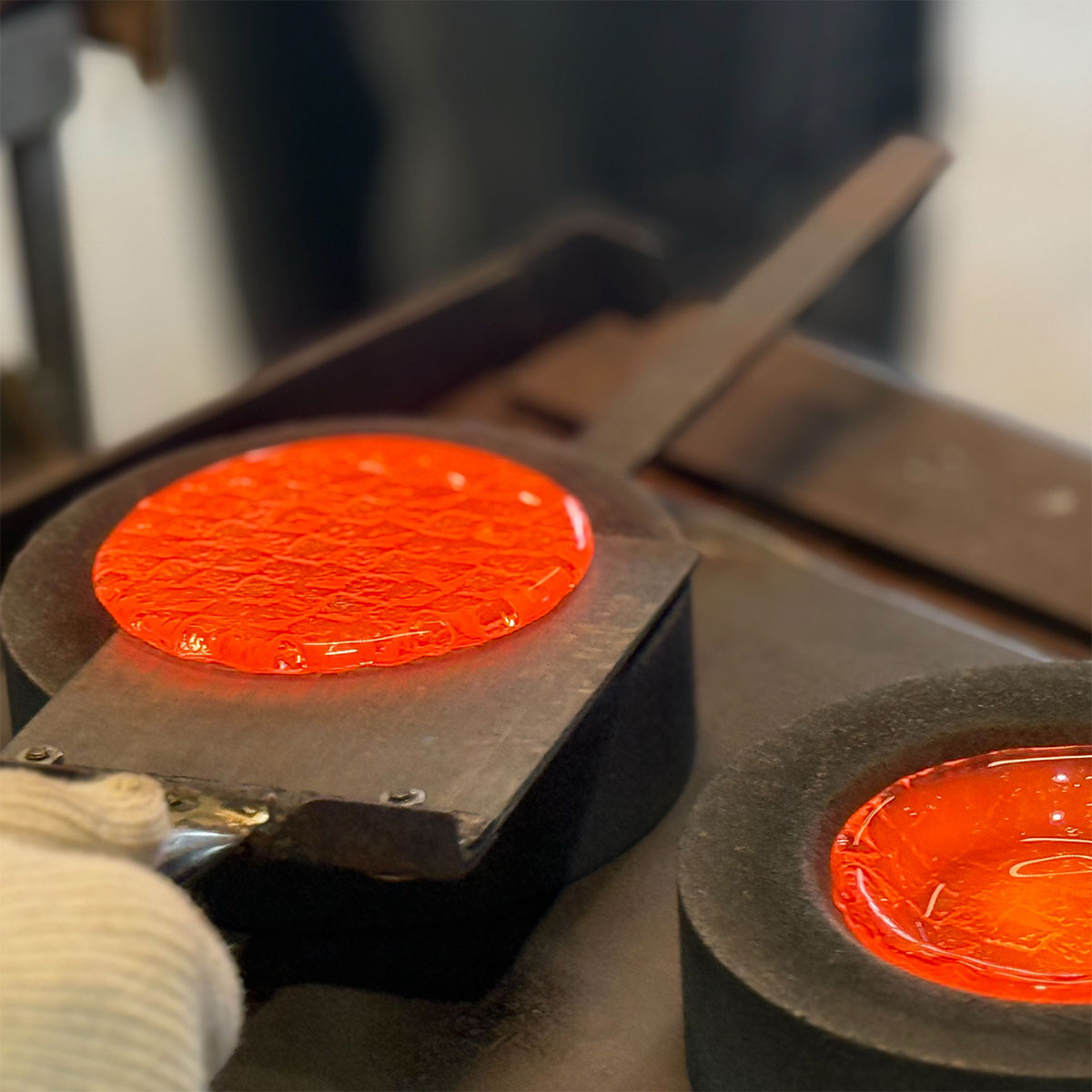 ガラスは600℃ くらいになると、固まって動かなくなります。そこまで待って、最終工程のゆっくり冷ます炉に入れて、約2時間半かけて完成です。