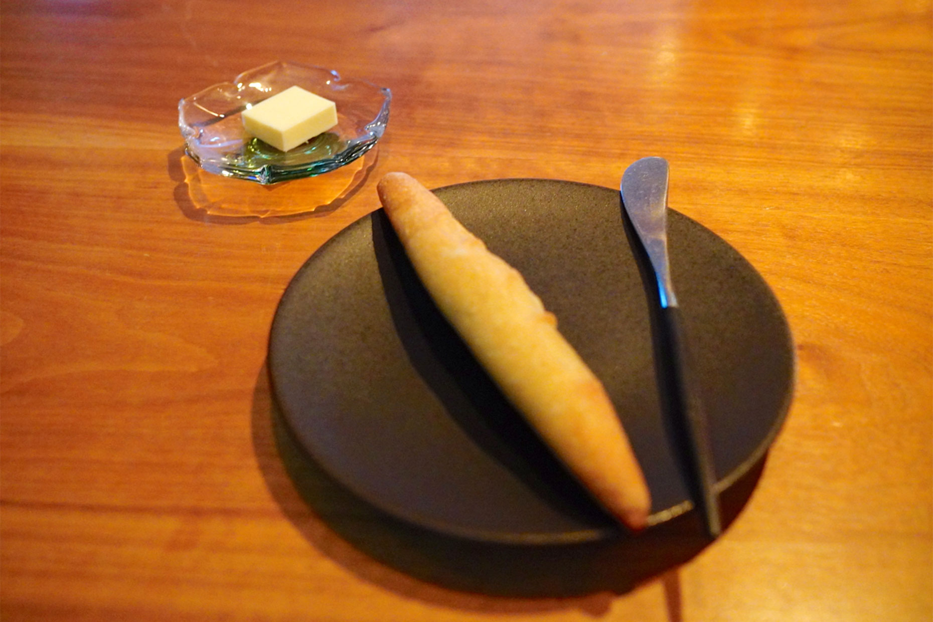 バゲッティ―ㇴに添えられたバターはガラスの豆花皿に。(PML-009FG)