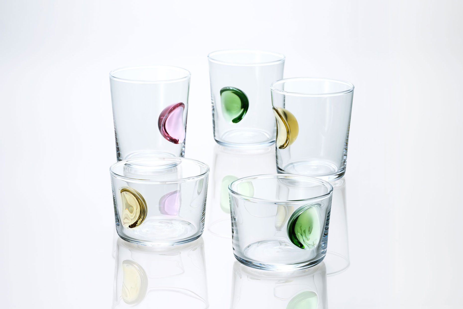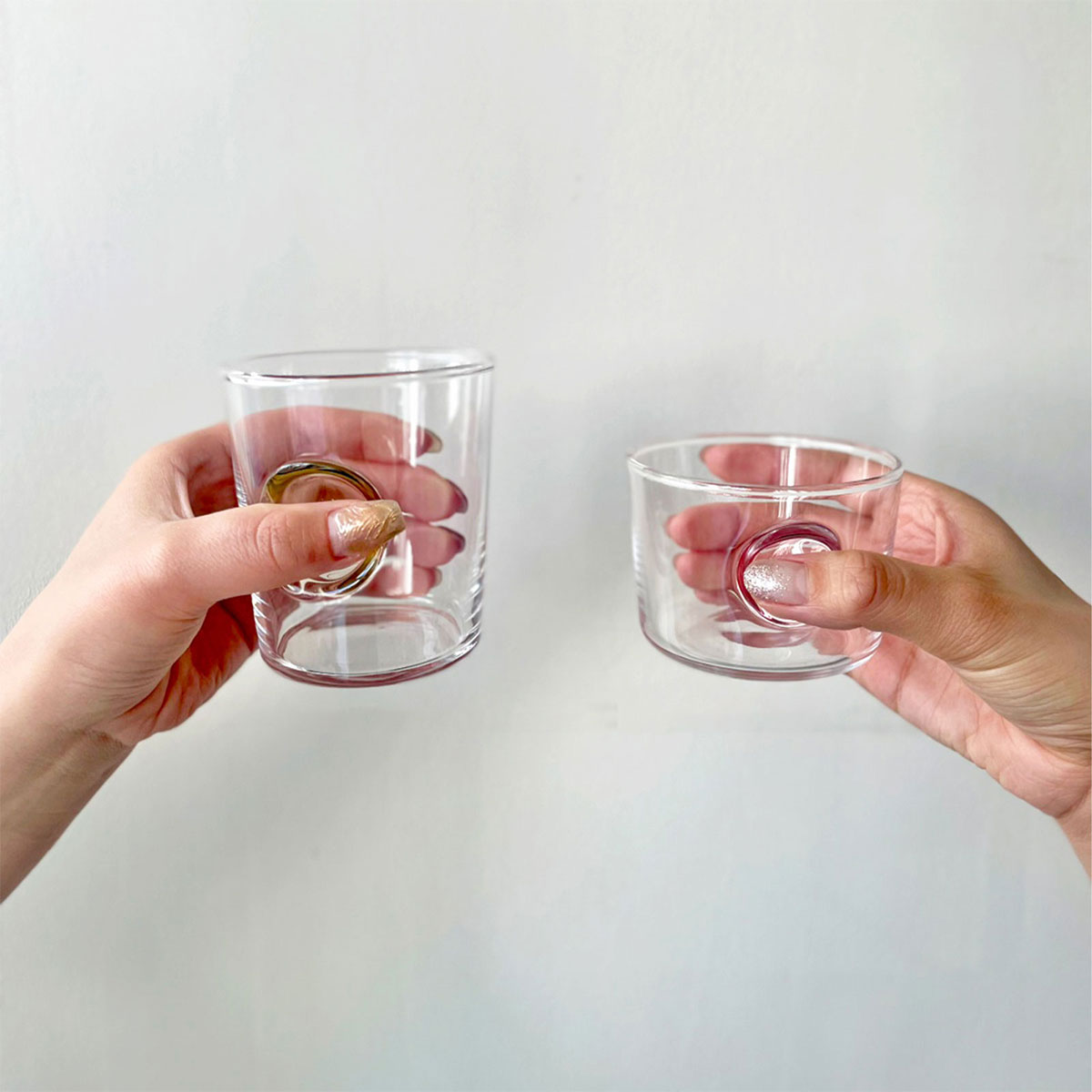 シンプルなフォルムのグラスに、ぽてっとしたくぼみが可愛らしい「えくぼコップ」。