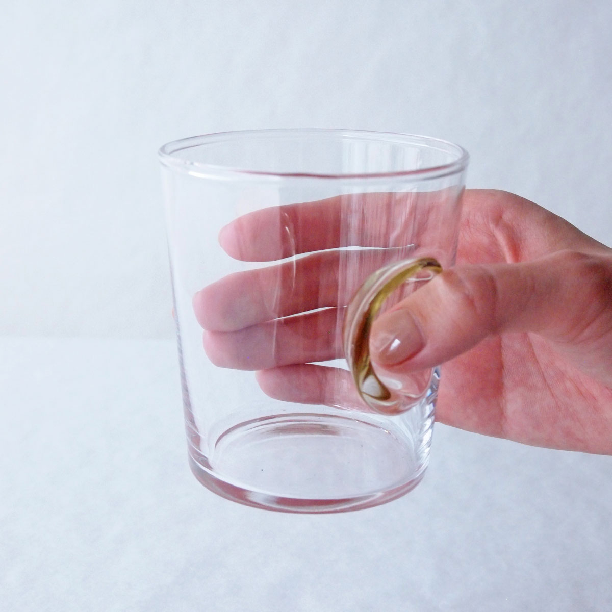 グラスのくぼみは、右手でも左手でも持ちやすいようになっていて、また小さいサイズのグラスは、お子さんにも持ちやすいサイズ感なのが嬉しいポイント。