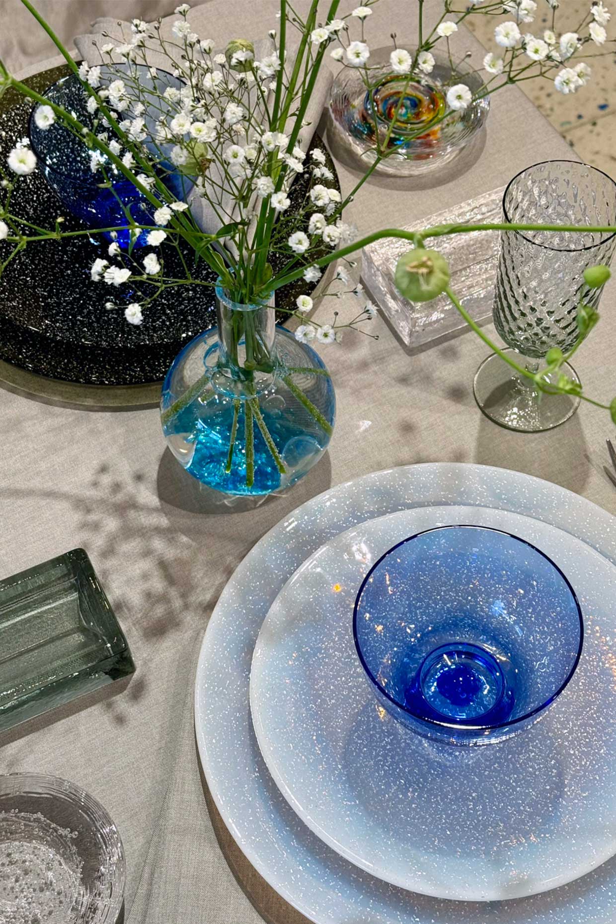 NEW DESIGN 2026では、ガラスならではの新しい表情を追い求め生み出された、ニューフェイスを使ったテーブルセッティングで皆さまをお迎えいたします。