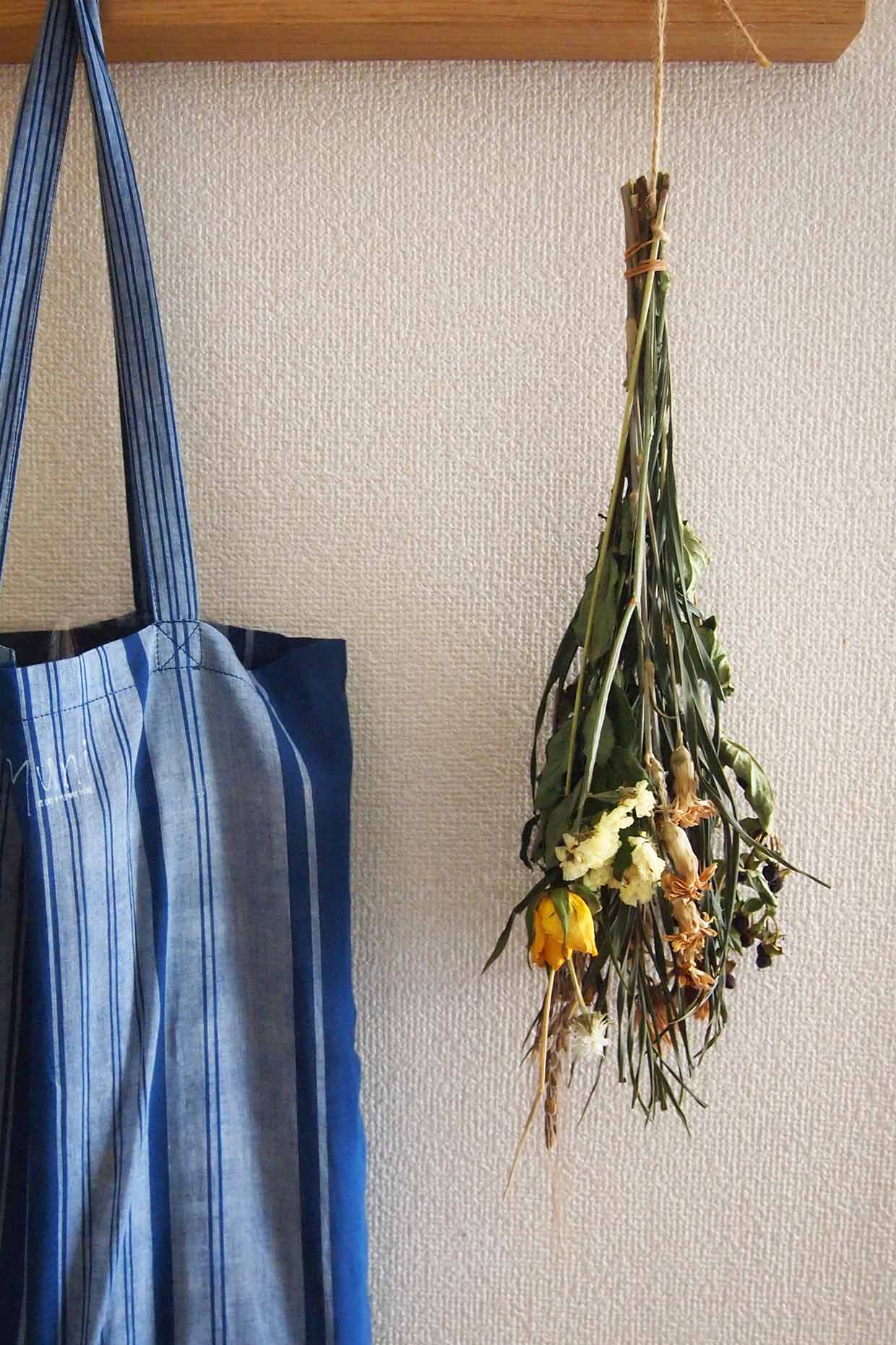 や小さなスペースでも楽しめて、簡単に取り入れられるドライフラワー。もともとわたしがドライフラワーに興味を持ったのは、貰った花束はすぐにドライにするという友人の話を聞いたことがきっかけでした。生花の瑞々しさを楽しむのも素敵ですが、貰った嬉しさをいつまでも残したい。それがとても素敵なことに思えて、それから部屋に飾る花はドライフラワーが中心になりました。